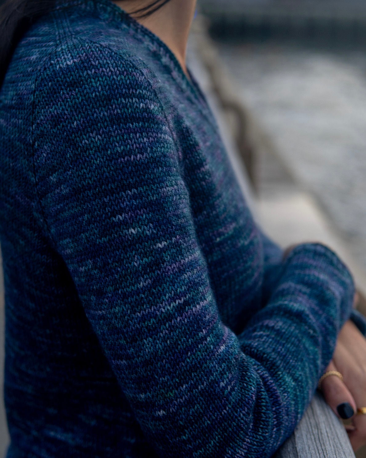 The Avenue Pullover is written with 2 neck shaping options: crew and v neck and is a top-down contiguous construction that is worked seamlessly.