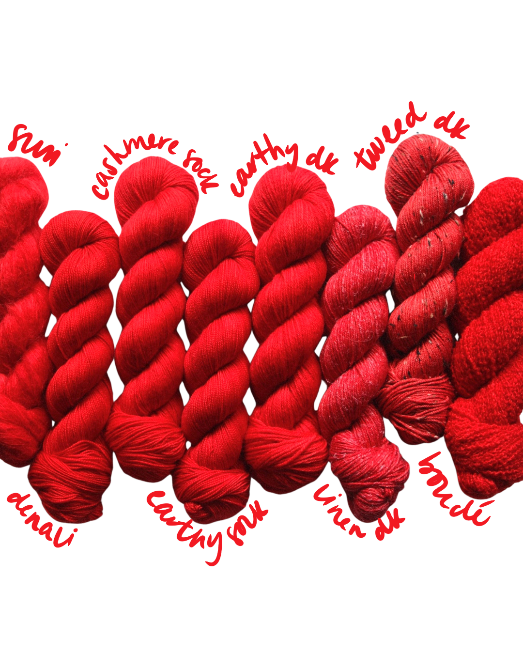 Important Note: all yarn is dyed in fairly small batches - meaning that each skein, while using the same dye recipe, will be slightly unique due to the nature of my dyeing process. additionally, while I do my best to make sure the photo matches the actual skeins, color may vary slightly from screen to screen (phone, computer. etc.)